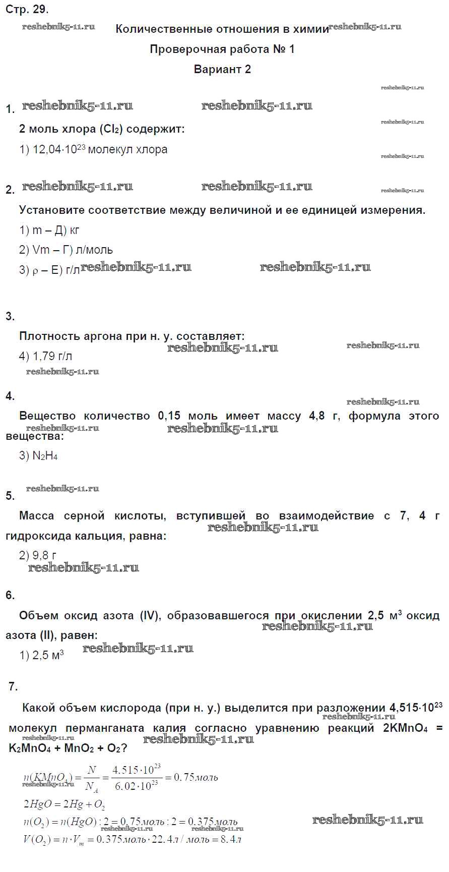 Готовая домашняя работа с ответами по Химии за 8 класс Бобылева, Бирюлина, Дмитриева, Тараканова Тетрадь-экзаменатор Сферы Просвещение 2016 ФГОС - Страницы 29