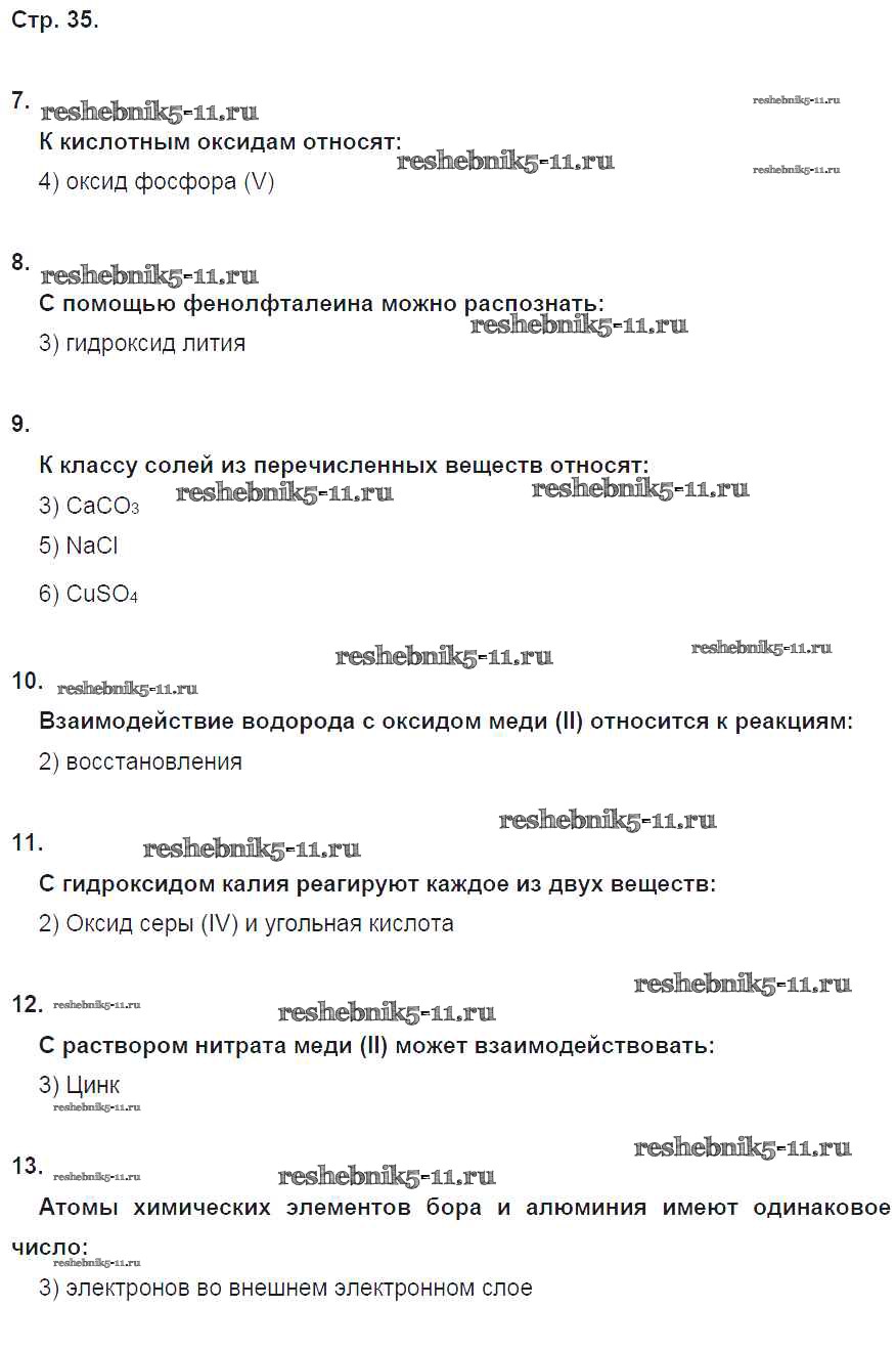 Готовая домашняя работа с ответами по Химии за 8 класс Бобылева, Бирюлина, Дмитриева, Тараканова Тетрадь-экзаменатор Сферы Просвещение 2016 ФГОС - Страницы 35