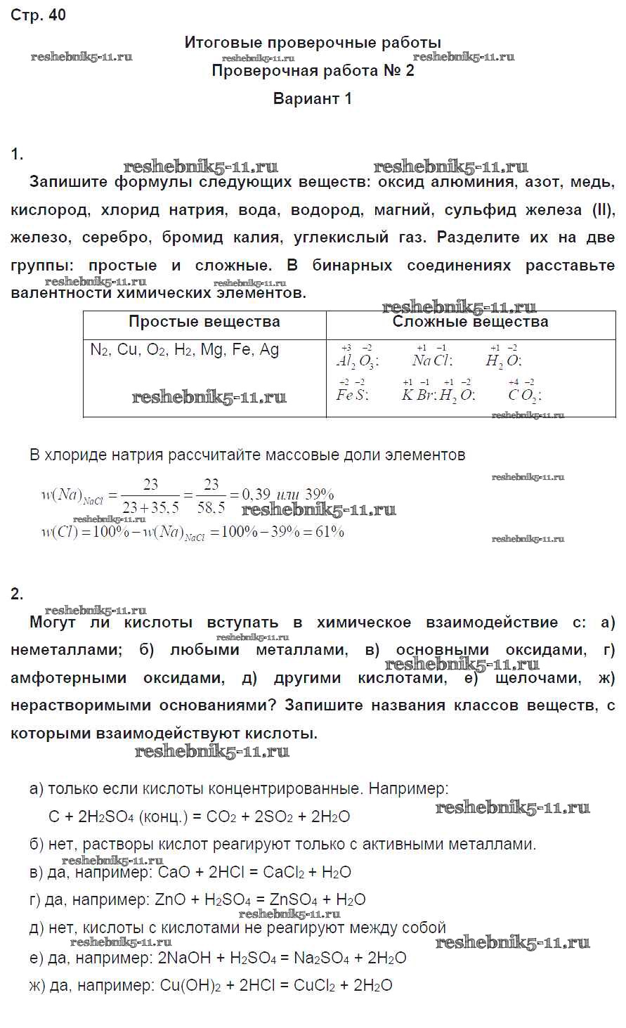 Готовая домашняя работа с ответами по Химии за 8 класс Бобылева, Бирюлина, Дмитриева, Тараканова Тетрадь-экзаменатор Сферы Просвещение 2016 ФГОС - Страницы 40
