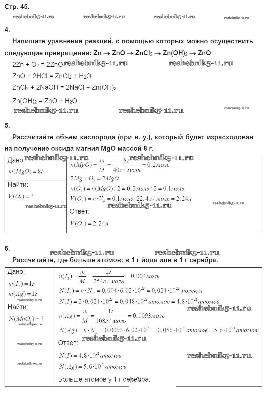 Готовая домашняя работа с ответами по Химии за 8 класс Бобылева, Бирюлина, Дмитриева, Тараканова Тетрадь-экзаменатор Сферы Просвещение 2016 ФГОС - Страницы 45