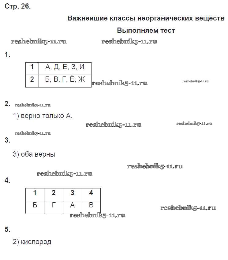 Готовая домашняя работа с ответами по Химии за 8 класс Гара Тетрадь-тренажер Сферы Просвещение 2017 ФГОС - Страницы 26