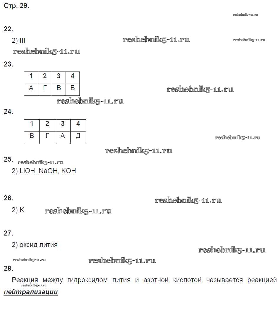 Готовая домашняя работа с ответами по Химии за 8 класс Гара Тетрадь-тренажер Сферы Просвещение 2017 ФГОС - Страницы 29