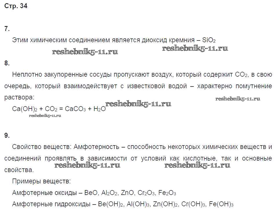 Готовая домашняя работа с ответами по Химии за 8 класс Гара Тетрадь-тренажер Сферы Просвещение 2017 ФГОС - Страницы 34