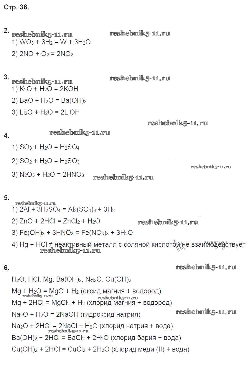 Готовая домашняя работа с ответами по Химии за 8 класс Гара Тетрадь-тренажер Сферы Просвещение 2017 ФГОС - Страницы 36