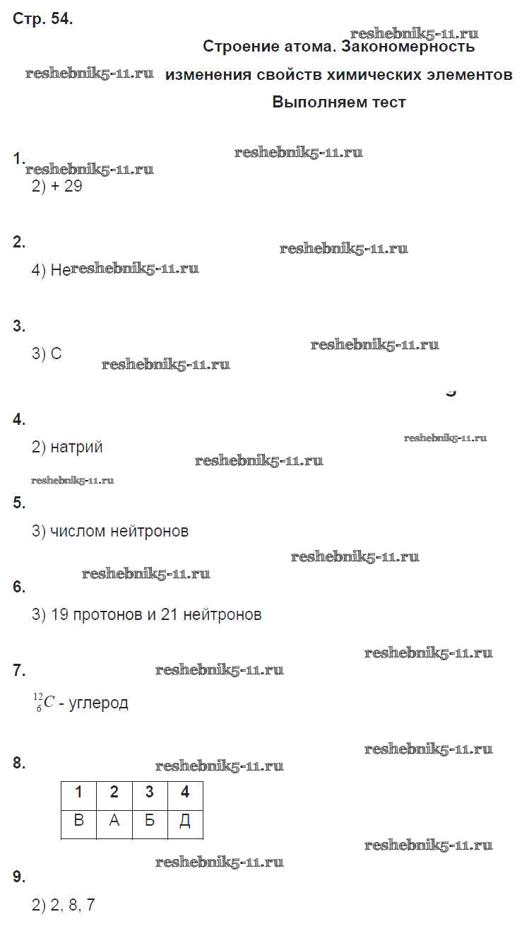 Готовая домашняя работа с ответами по Химии за 8 класс Гара Тетрадь-тренажер Сферы Просвещение 2017 ФГОС - Страницы 54