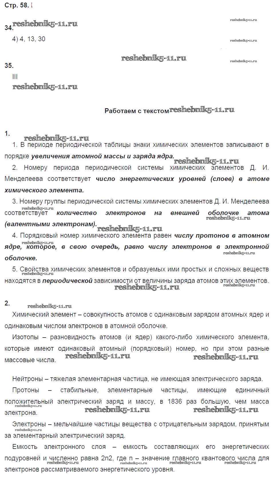 Готовая домашняя работа с ответами по Химии за 8 класс Гара Тетрадь-тренажер Сферы Просвещение 2017 ФГОС - Страницы 58