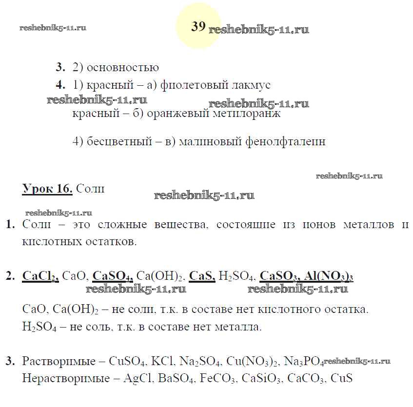Готовая домашняя работа с ответами по Химии за 8 класс Микитюк Рабочая тетрадь УМК Экзамен 2015 ФГОС - Страницы 39
