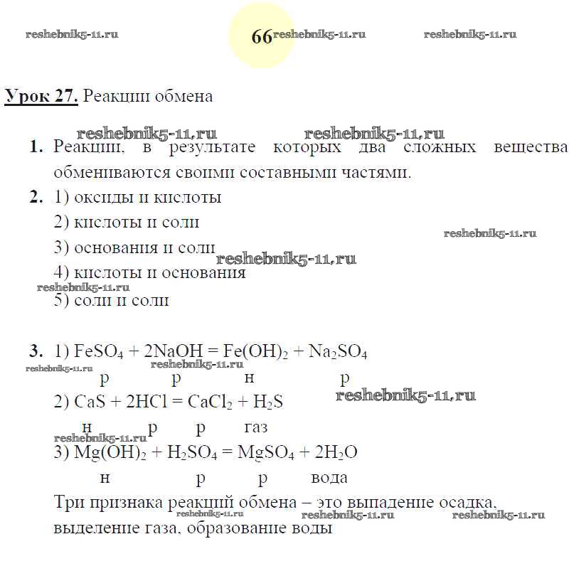 Готовая домашняя работа с ответами по Химии за 8 класс Микитюк Рабочая тетрадь УМК Экзамен 2015 ФГОС - Страницы 66