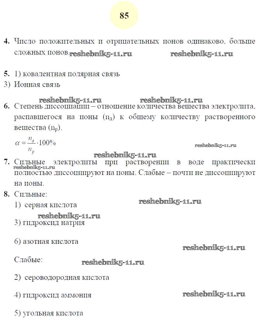 Готовая домашняя работа с ответами по Химии за 8 класс Микитюк Рабочая тетрадь УМК Экзамен 2015 ФГОС - Страницы 85