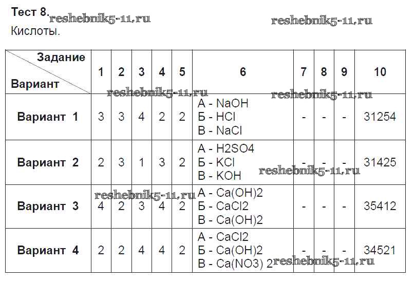 Готовая домашняя работа с ответами по Химии за 8 класс Боровских Тесты УМК Экзамен 2013 ФГОС - Тесты Тест 8
