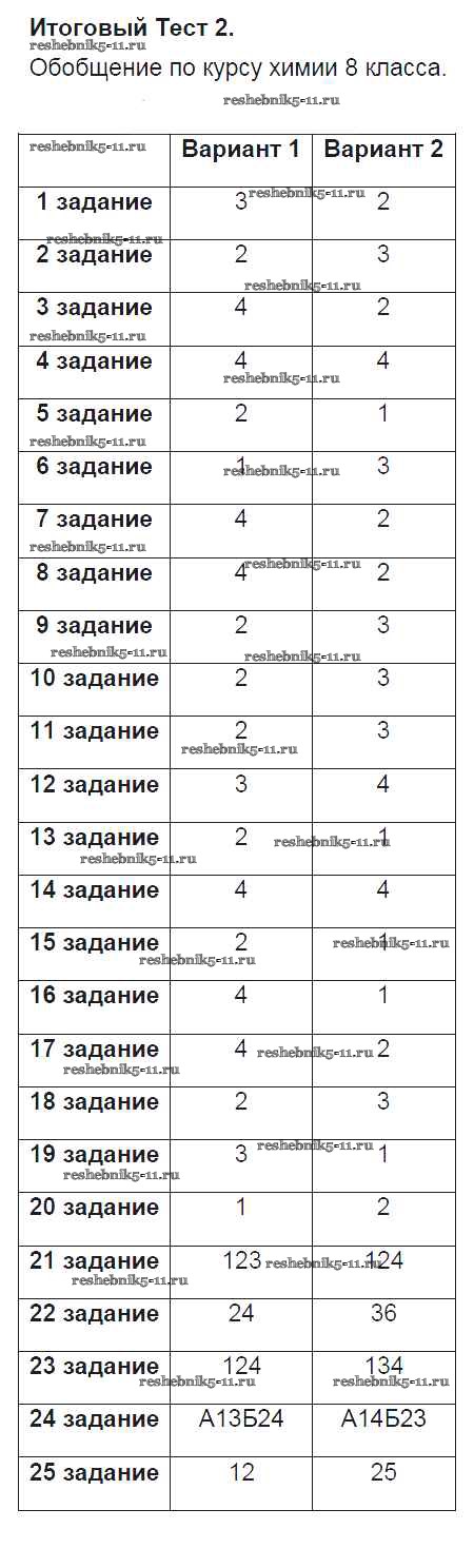 Готовая домашняя работа с ответами по Химии за 8 класс Боровских Тесты УМК Экзамен 2013 ФГОС - Итоговый тест 2