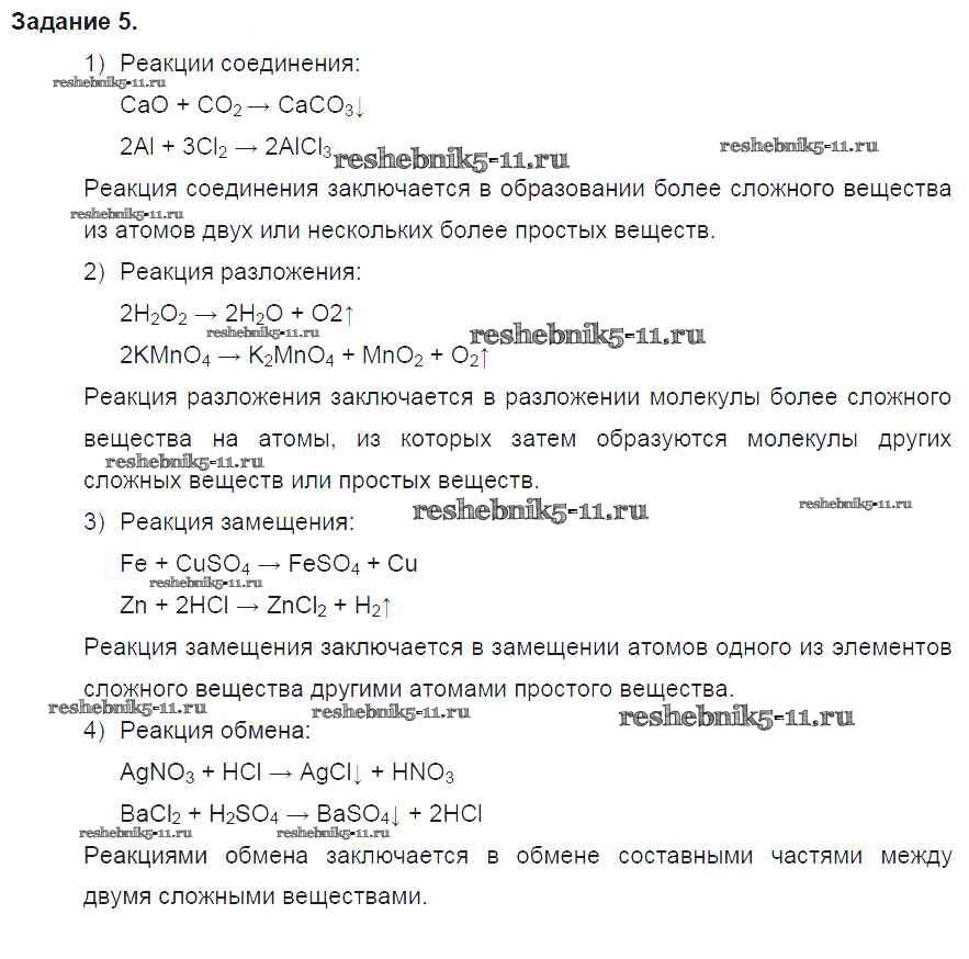 Готовая домашняя работа с ответами по Химии за 8 класс Рудзитис, Фельдман Учебник УМК Просвещение 2016 ФГОС - § 14-17 5