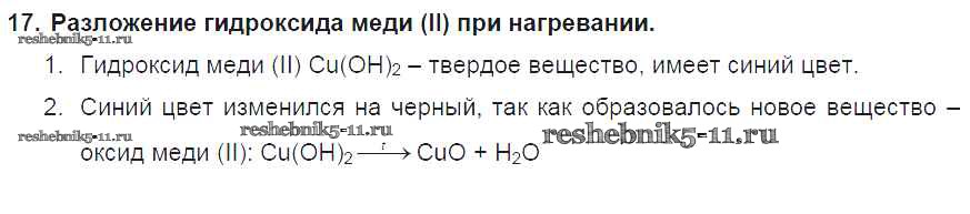 Готовая домашняя работа с ответами по Химии за 8 класс Рудзитис, Фельдман Учебник УМК Просвещение 2016 ФГОС - Лабораторные опыты 17