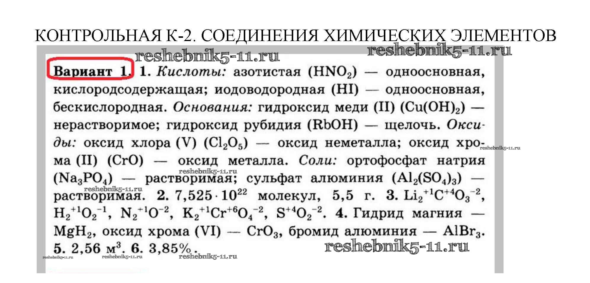 Готовая домашняя работа с ответами по Химии за 8 класс Павлова Контрольные и самостоятельные работы УМК Экзамен 2016 ФГОС - Контрольная работа 2 1