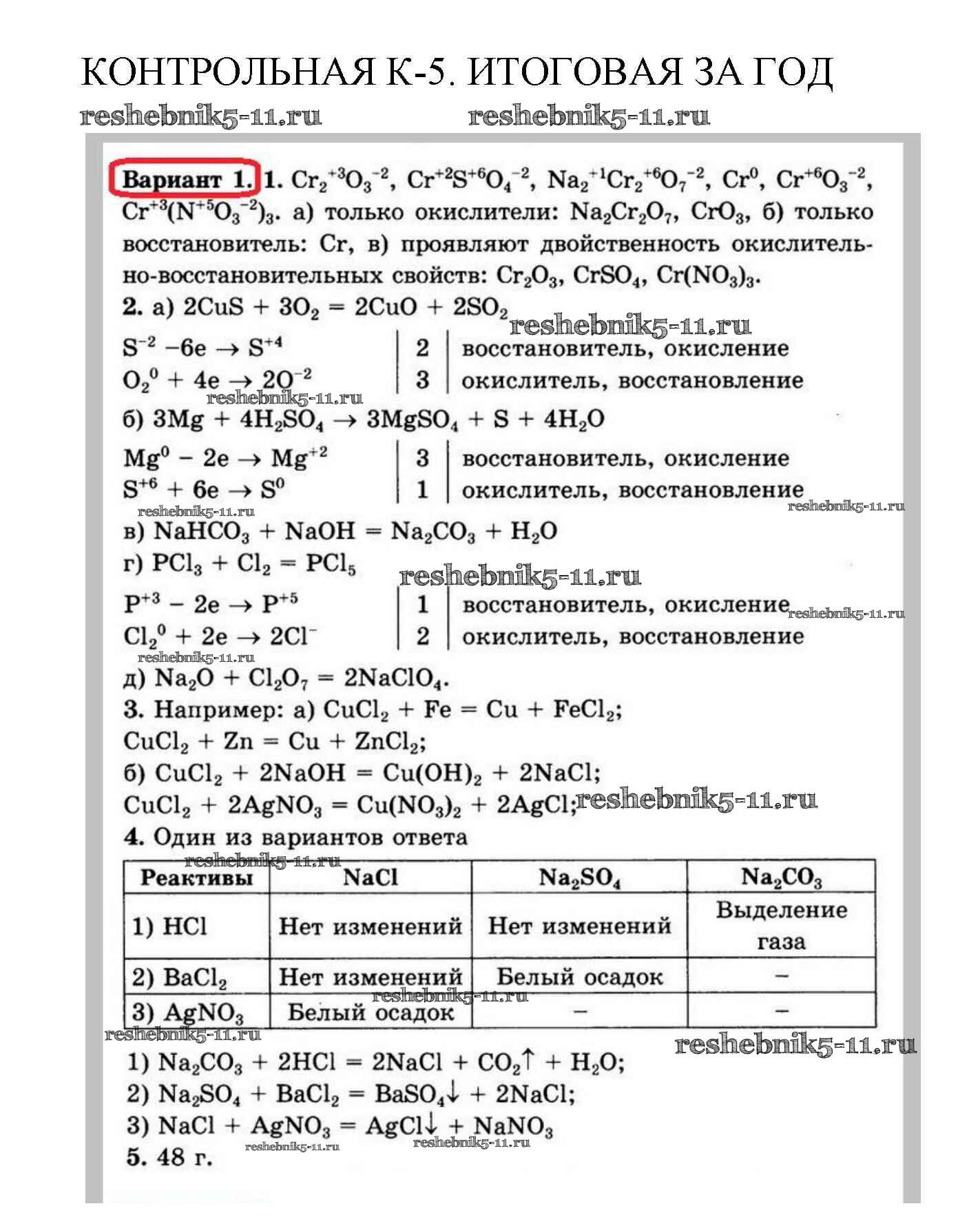 Готовая домашняя работа с ответами по Химии за 8 класс Павлова Контрольные и самостоятельные работы УМК Экзамен 2016 ФГОС - Контрольная работа 5 1