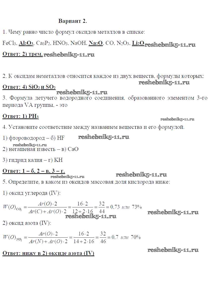 Готовая домашняя работа с ответами по Химии за 8 класс Габриелян, Краснова Контрольные работы УМК Дрофа 2017 ФГОС - ПР-11. Варианты 2