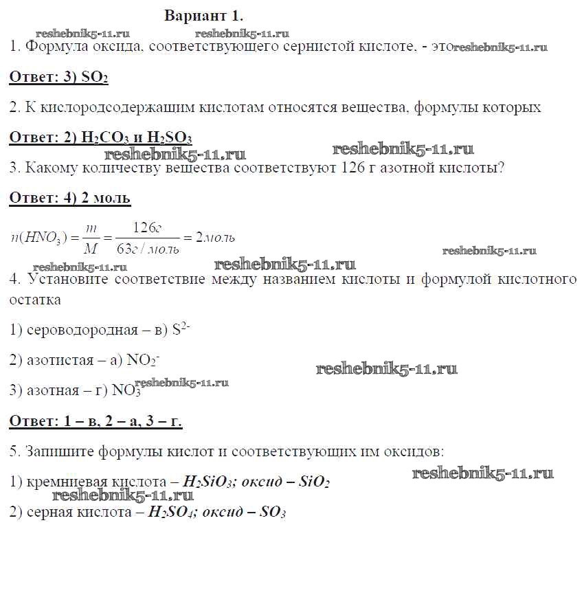 Готовая домашняя работа с ответами по Химии за 8 класс Габриелян, Краснова Контрольные работы УМК Дрофа 2017 ФГОС - ПР-13. Варианты 1
