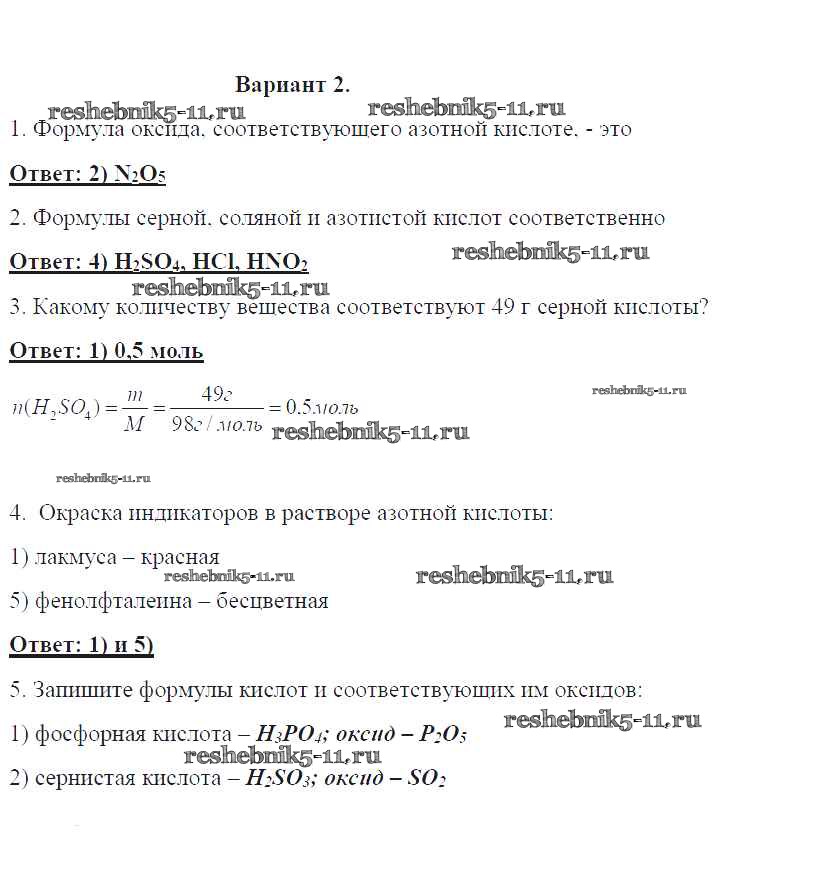 Готовая домашняя работа с ответами по Химии за 8 класс Габриелян, Краснова Контрольные работы УМК Дрофа 2017 ФГОС - ПР-13. Варианты 2