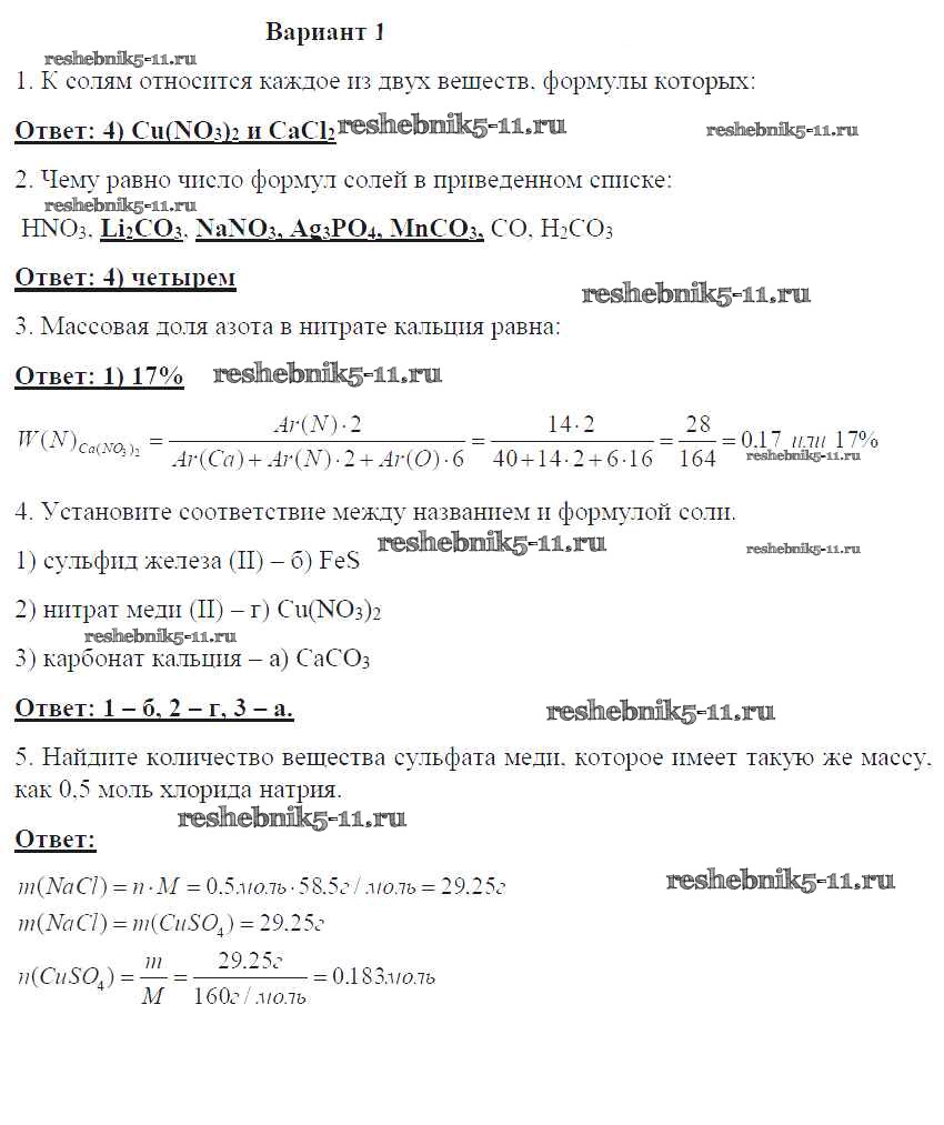 Готовая домашняя работа с ответами по Химии за 8 класс Габриелян, Краснова Контрольные работы УМК Дрофа 2017 ФГОС - ПР-14. Варианты 1