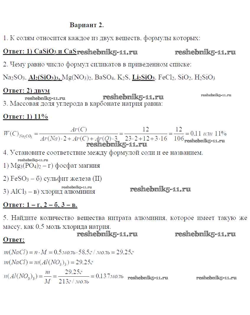 Готовая домашняя работа с ответами по Химии за 8 класс Габриелян, Краснова Контрольные работы УМК Дрофа 2017 ФГОС - ПР-14. Варианты 2