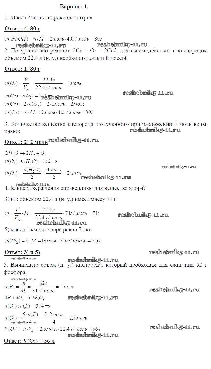 Готовая домашняя работа с ответами по Химии за 8 класс Габриелян, Краснова Контрольные работы УМК Дрофа 2017 ФГОС - ПР-16. Варианты 1