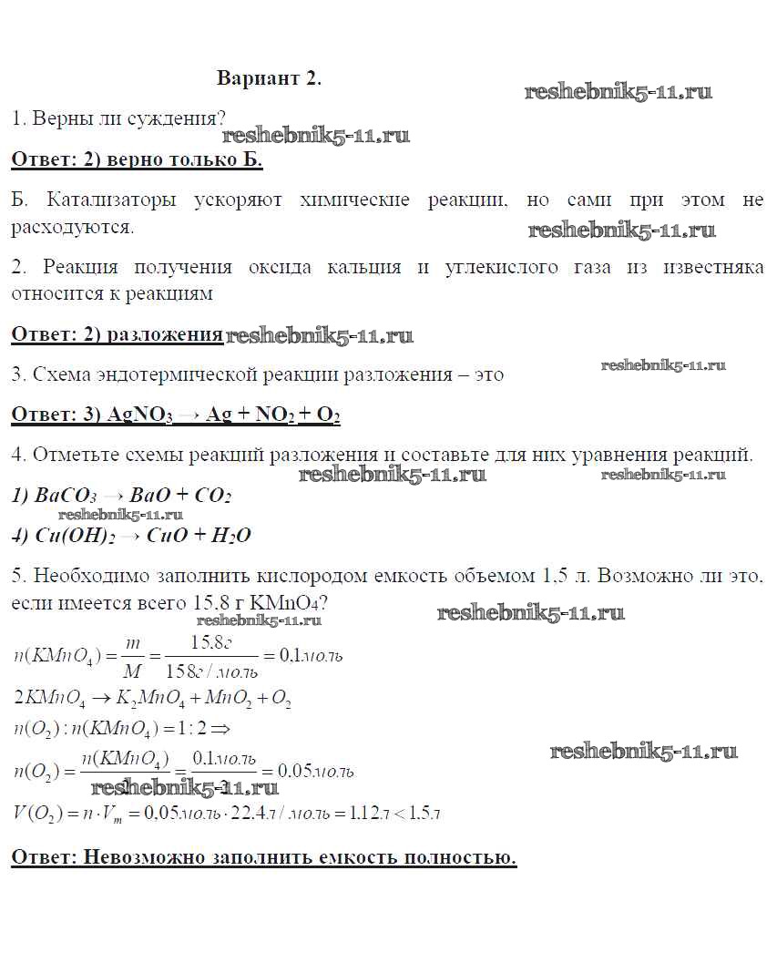 Готовая домашняя работа с ответами по Химии за 8 класс Габриелян, Краснова Контрольные работы УМК Дрофа 2017 ФГОС - ПР-17. Варианты 2