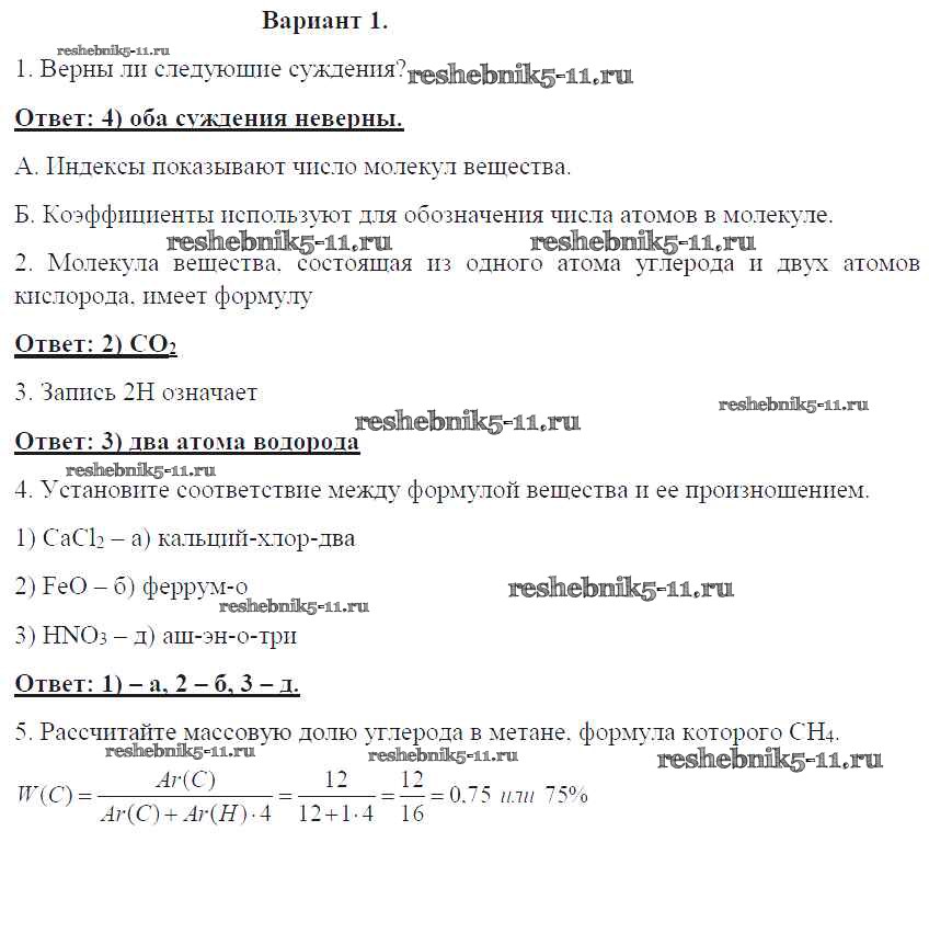 Готовая домашняя работа с ответами по Химии за 8 класс Габриелян, Краснова Контрольные работы УМК Дрофа 2017 ФГОС - ПР-2. Варианты 1