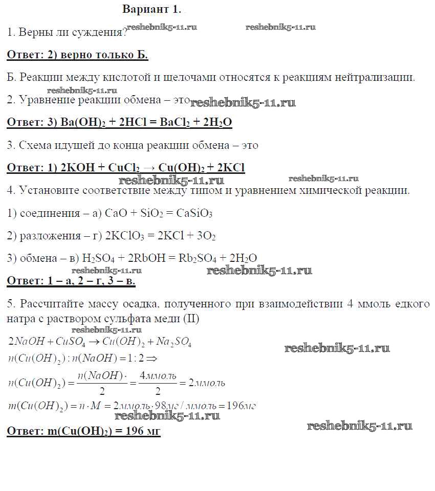 Готовая домашняя работа с ответами по Химии за 8 класс Габриелян, Краснова Контрольные работы УМК Дрофа 2017 ФГОС - ПР-20. Варианты 1