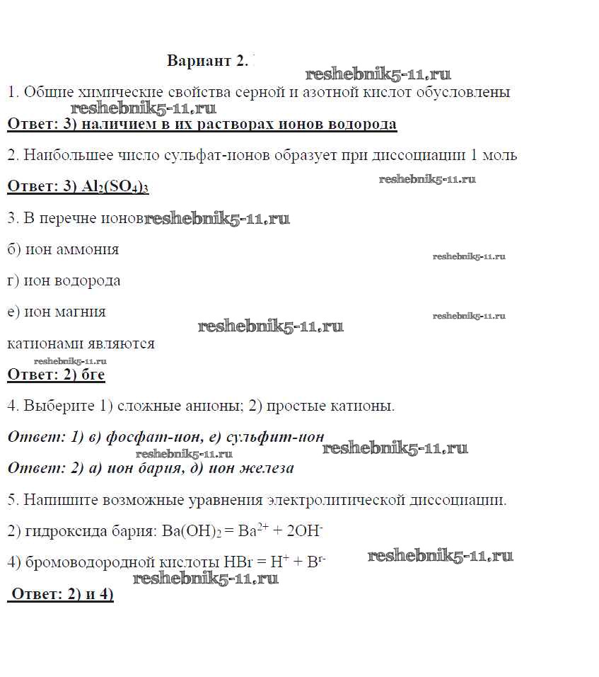 Готовая домашняя работа с ответами по Химии за 8 класс Габриелян, Краснова Контрольные работы УМК Дрофа 2017 ФГОС - ПР-23. Варианты 2