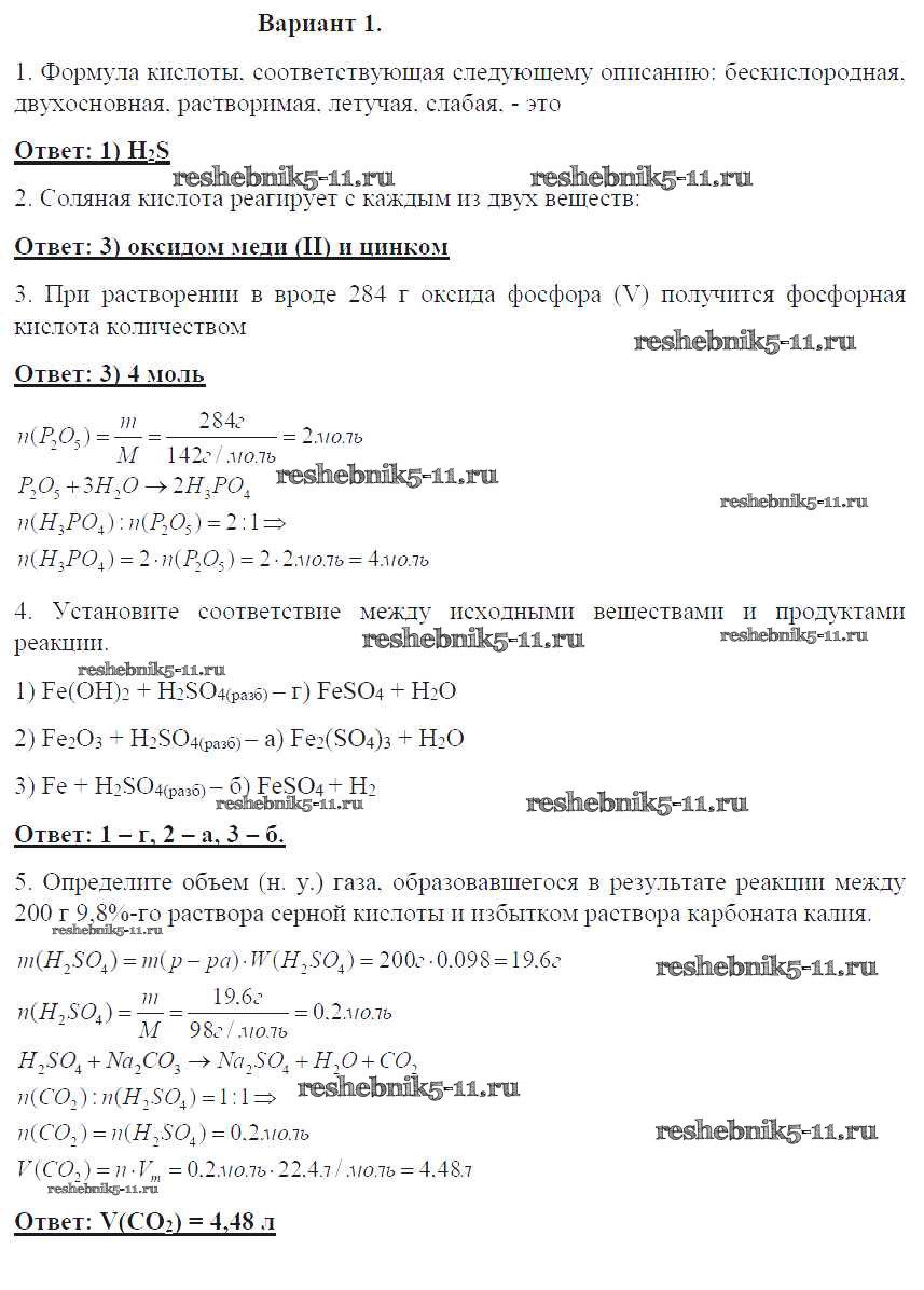 Готовая домашняя работа с ответами по Химии за 8 класс Габриелян, Краснова Контрольные работы УМК Дрофа 2017 ФГОС - ПР-25. Варианты 1
