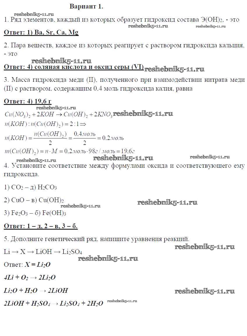 Готовая домашняя работа с ответами по Химии за 8 класс Габриелян, Краснова Контрольные работы УМК Дрофа 2017 ФГОС - ПР-26. Варианты 1