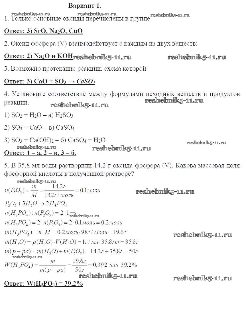 Готовая домашняя работа с ответами по Химии за 8 класс Габриелян, Краснова Контрольные работы УМК Дрофа 2017 ФГОС - ПР-27. Варианты 1