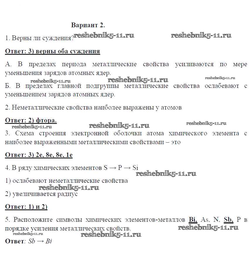 Готовая домашняя работа с ответами по Химии за 8 класс Габриелян, Краснова Контрольные работы УМК Дрофа 2017 ФГОС - ПР-5. Варианты 2