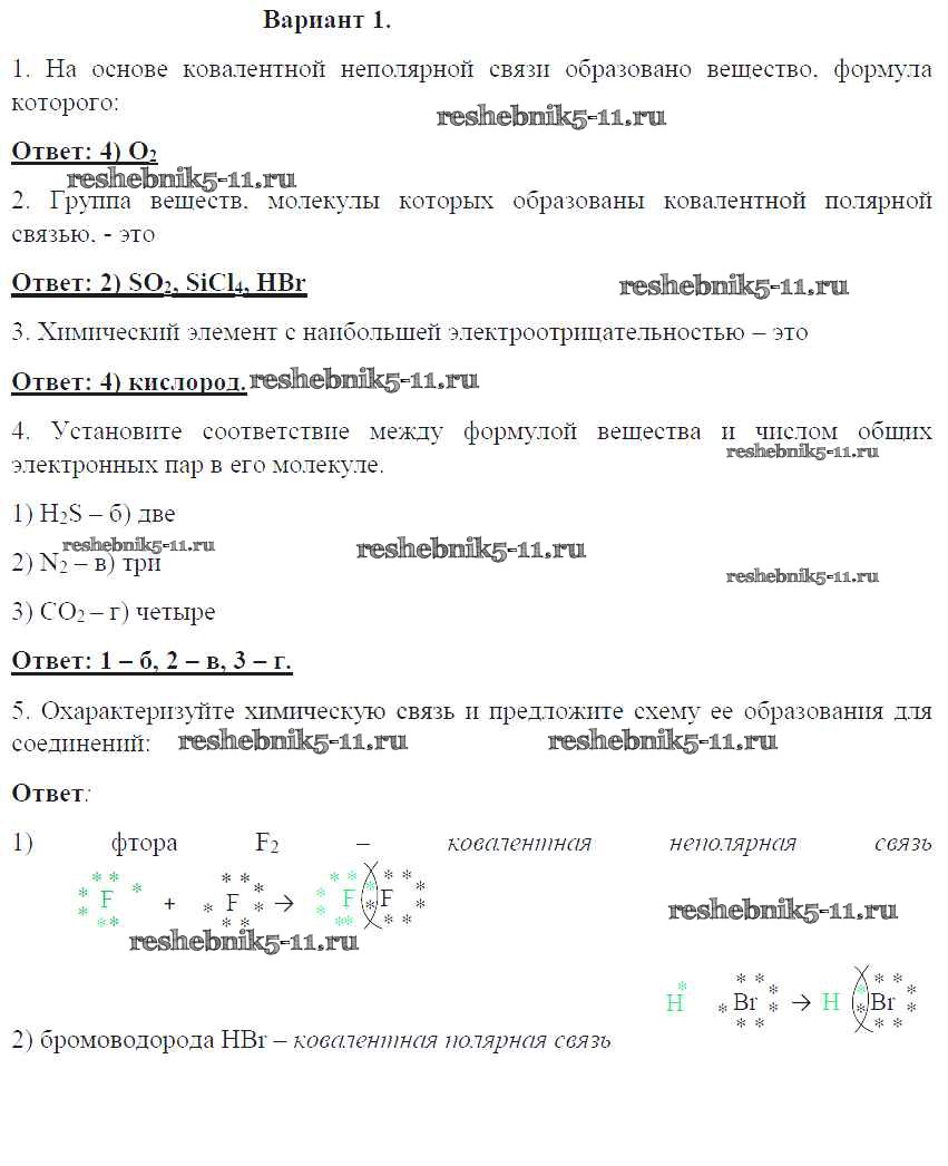 Готовая домашняя работа с ответами по Химии за 8 класс Габриелян, Краснова Контрольные работы УМК Дрофа 2017 ФГОС - ПР-7. Варианты 1