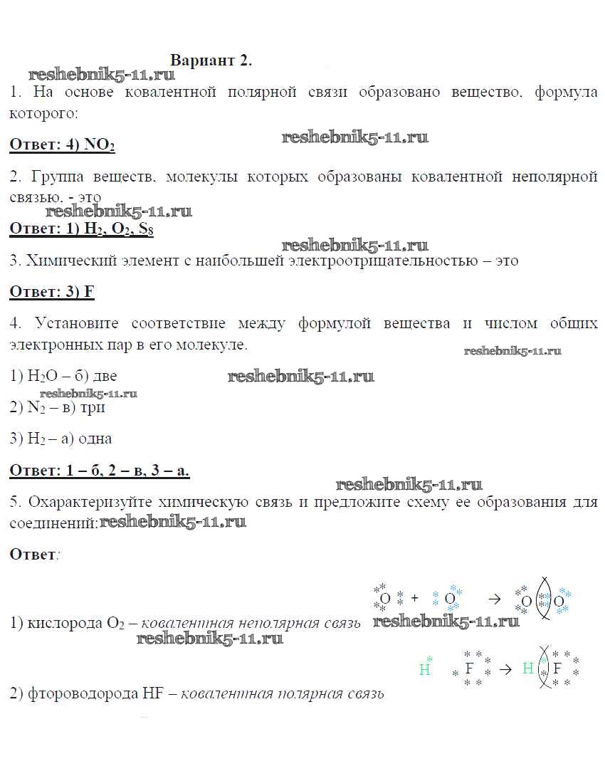 Готовая домашняя работа с ответами по Химии за 8 класс Габриелян, Краснова Контрольные работы УМК Дрофа 2017 ФГОС - ПР-7. Варианты 2