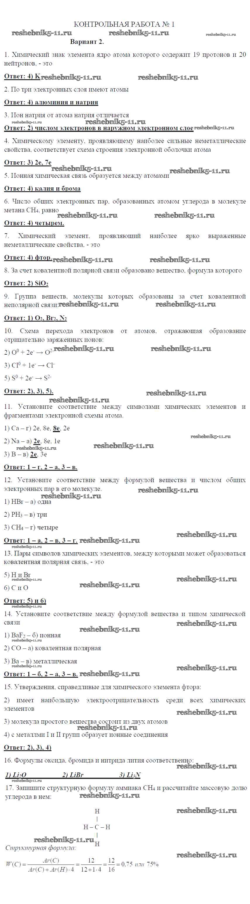 Готовая домашняя работа с ответами по Химии за 8 класс Габриелян, Краснова Контрольные работы УМК Дрофа 2017 ФГОС - КР-1. Варианты 2