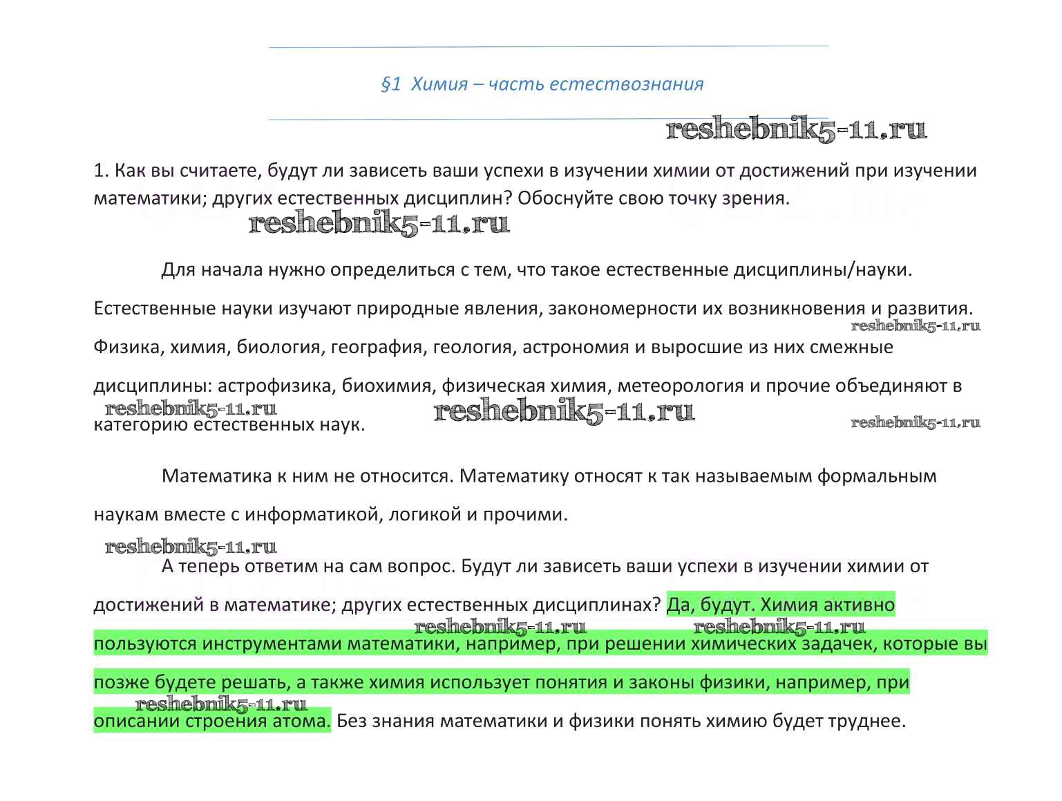Готовая домашняя работа с ответами по Химии за 8 класс Габриелян Учебник Вертикаль Дрофа 2019 ФГОС - §1. Химия — часть естествознания 1