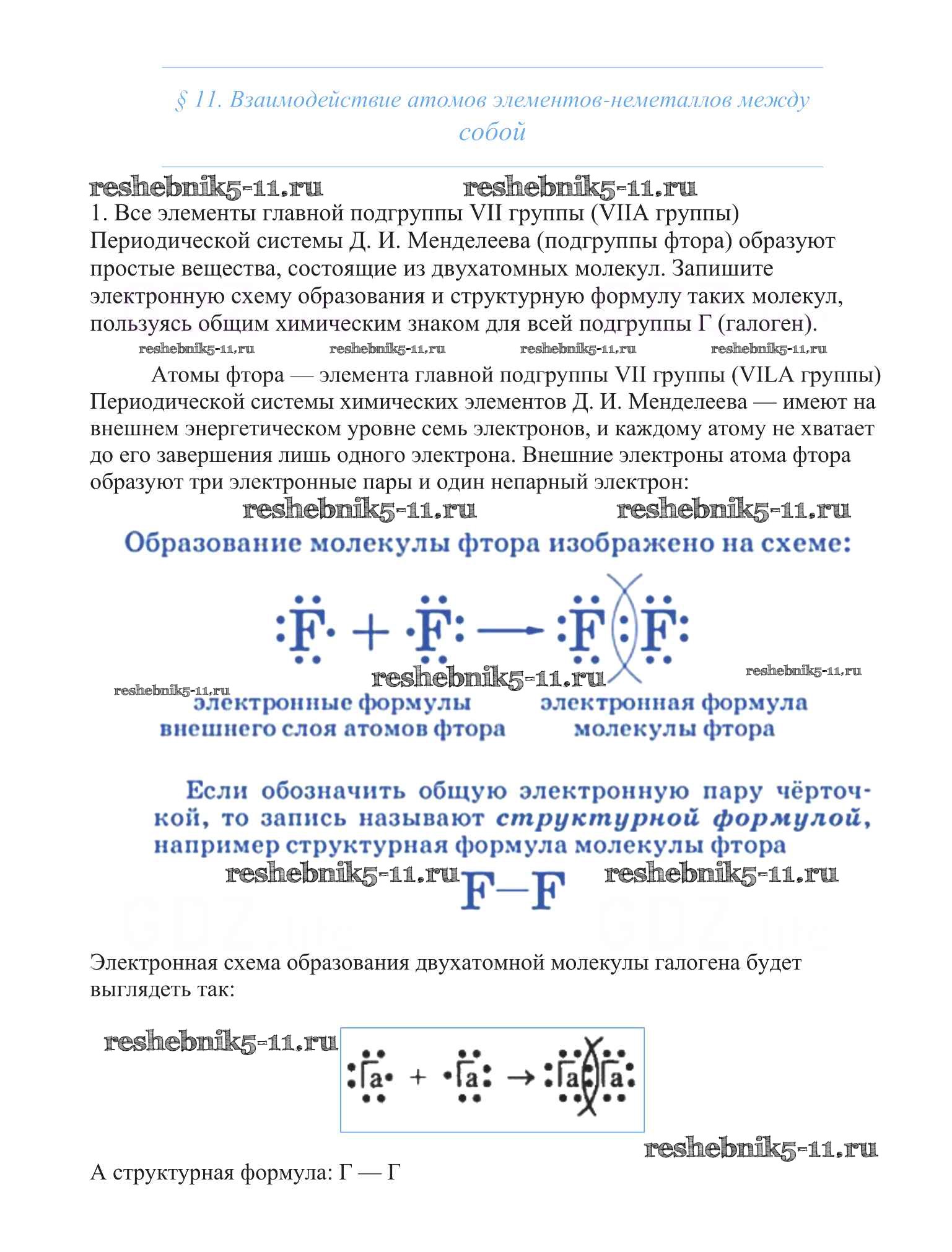 Готовая домашняя работа с ответами по Химии за 8 класс Габриелян Учебник Вертикаль Дрофа 2019 ФГОС - §11. Взаимодействие атомов элементов-неметаллов между собой 1