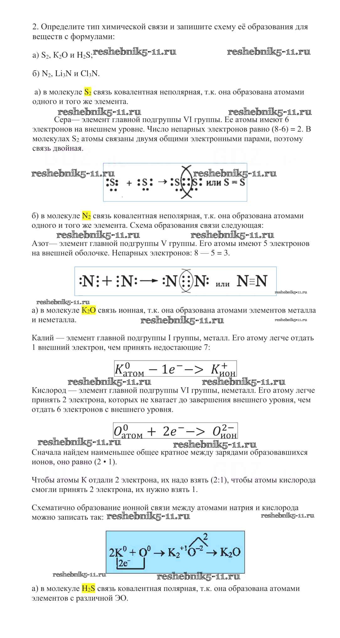 Готовая домашняя работа с ответами по Химии за 8 класс Габриелян Учебник Вертикаль Дрофа 2019 ФГОС - §12. Ковалентная полярная химическая связь 2