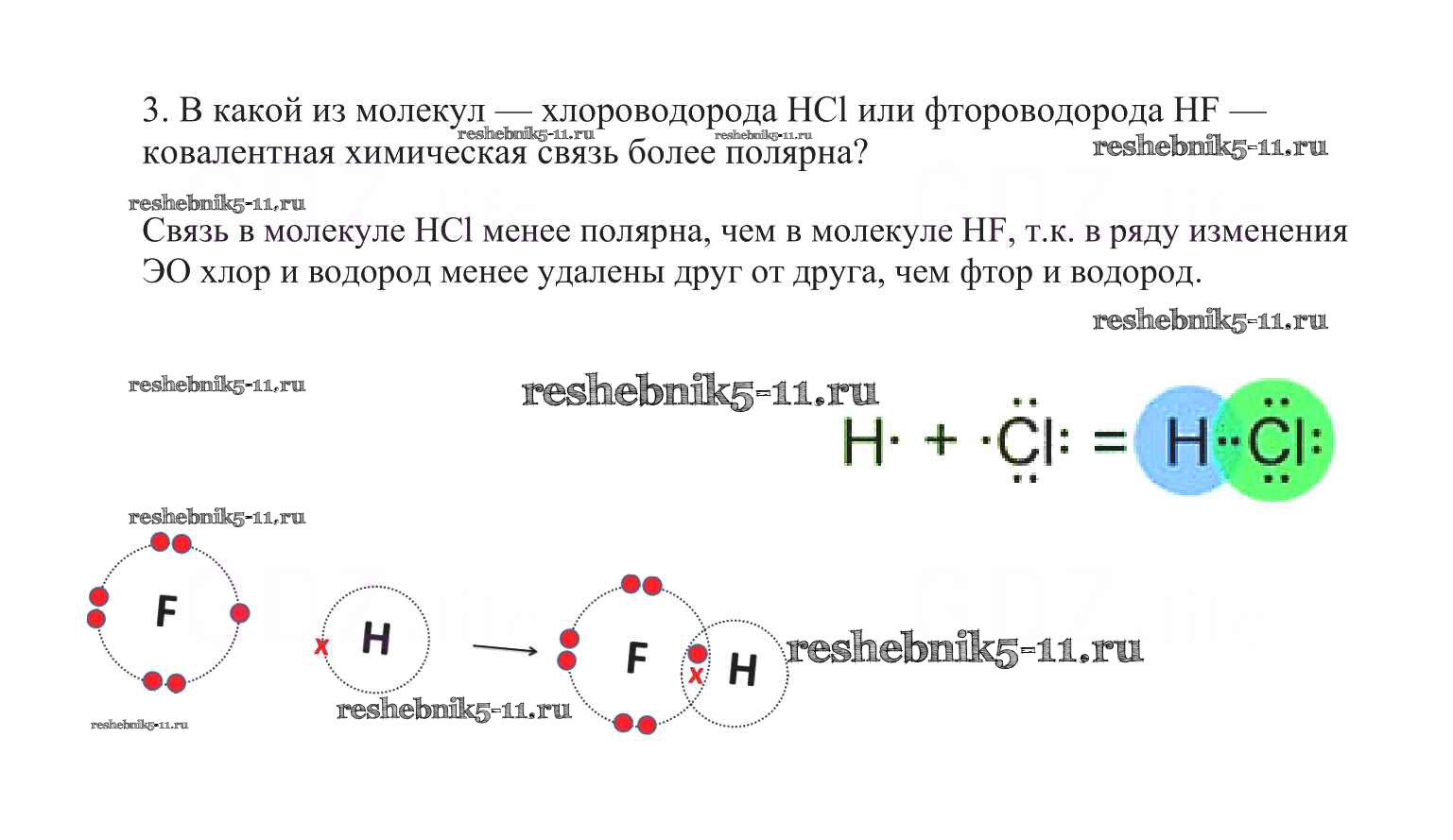 Готовая домашняя работа с ответами по Химии за 8 класс Габриелян Учебник Вертикаль Дрофа 2019 ФГОС - §12. Ковалентная полярная химическая связь 3