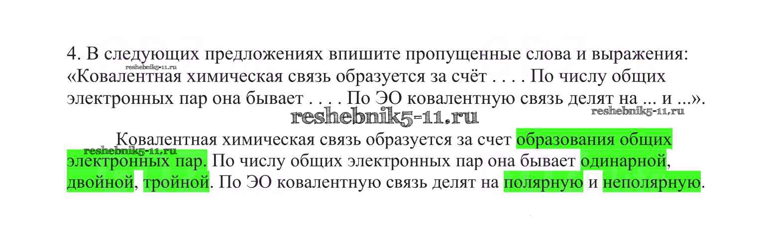 Готовая домашняя работа с ответами по Химии за 8 класс Габриелян Учебник Вертикаль Дрофа 2019 ФГОС - §12. Ковалентная полярная химическая связь 4