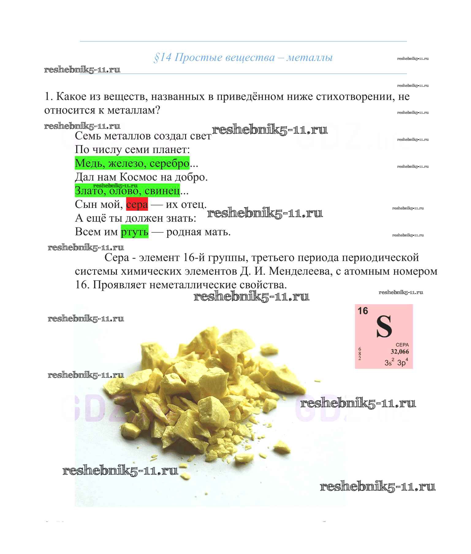 Готовая домашняя работа с ответами по Химии за 8 класс Габриелян Учебник Вертикаль Дрофа 2019 ФГОС - §14. Простые вещества — металлы 1