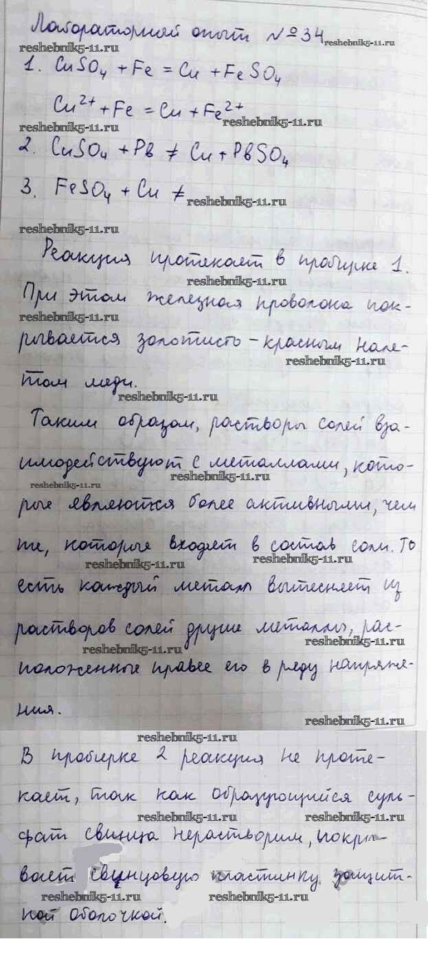 Готовая домашняя работа с ответами по Химии за 8 класс Габриелян Учебник Вертикаль Дрофа 2019 ФГОС - Лабораторные работы 34