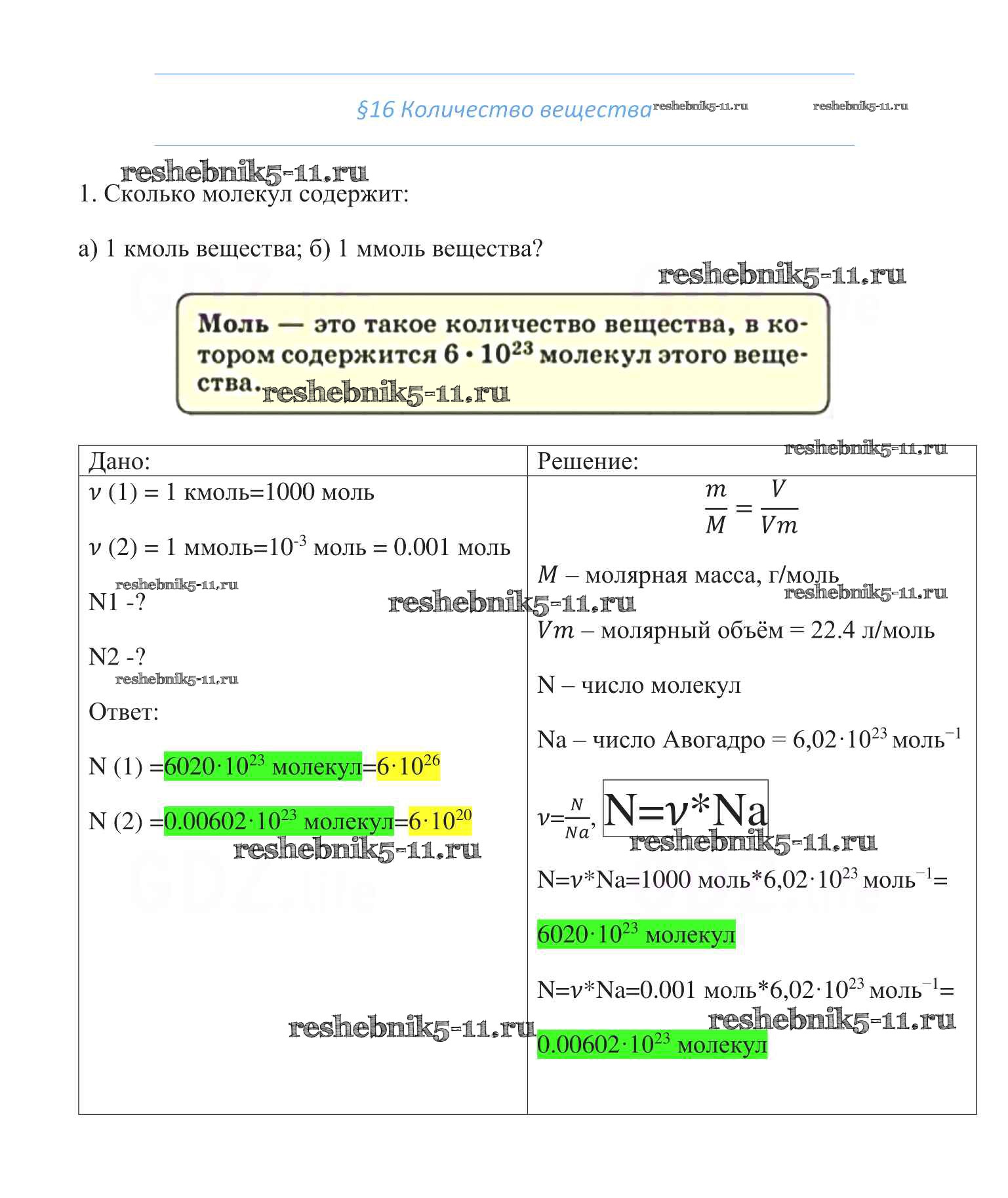 Готовая домашняя работа с ответами по Химии за 8 класс Габриелян Учебник Вертикаль Дрофа 2019 ФГОС - §16. Количество вещества 1