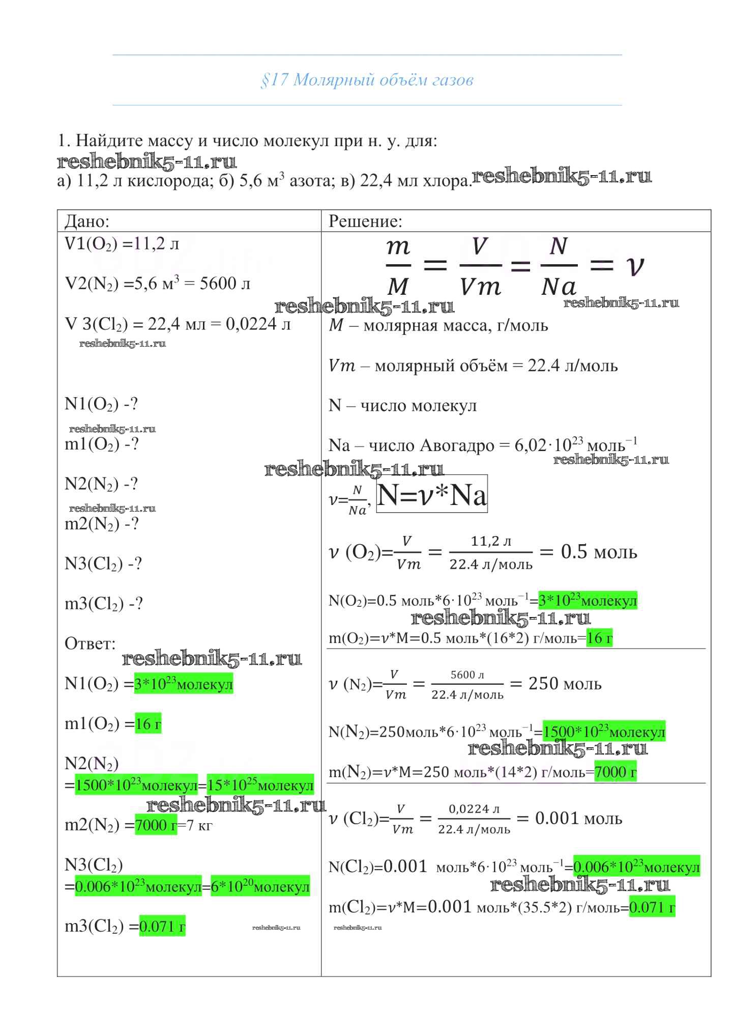 Готовая домашняя работа с ответами по Химии за 8 класс Габриелян Учебник Вертикаль Дрофа 2019 ФГОС - §17. Молярный объём газов 1