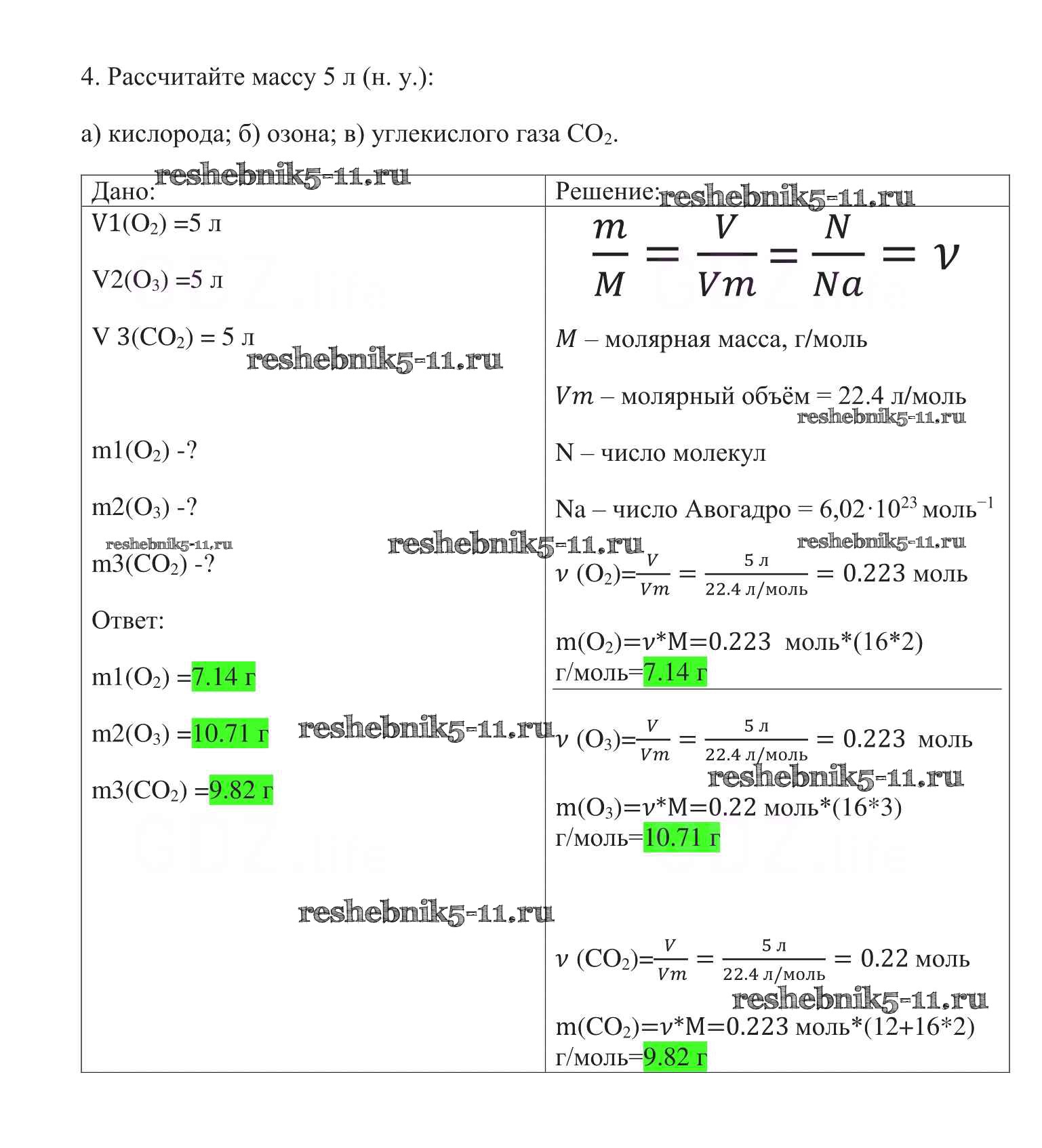 Готовая домашняя работа с ответами по Химии за 8 класс Габриелян Учебник Вертикаль Дрофа 2019 ФГОС - §17. Молярный объём газов 4