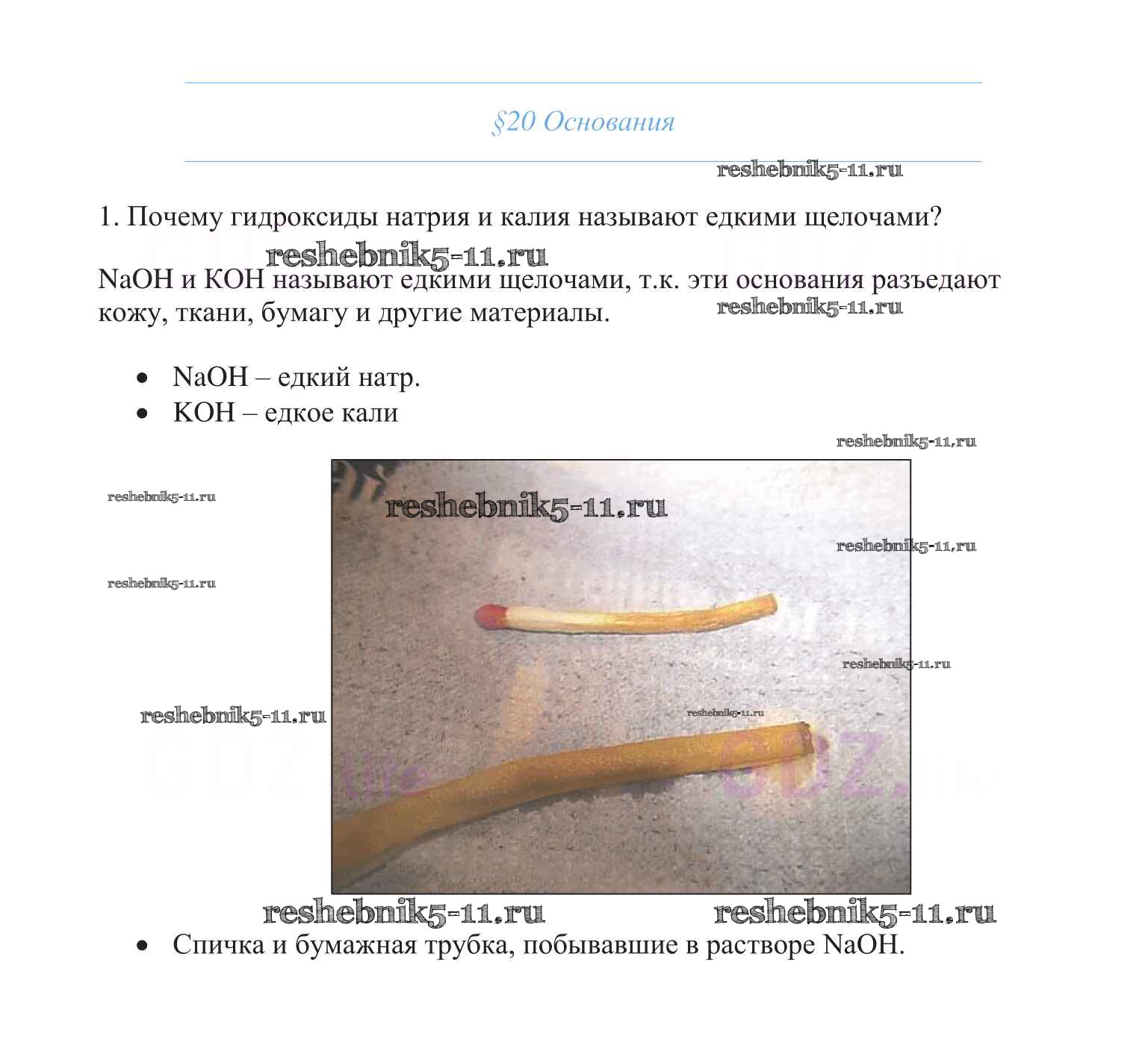 Готовая домашняя работа с ответами по Химии за 8 класс Габриелян Учебник Вертикаль Дрофа 2019 ФГОС - §20. Основания 1