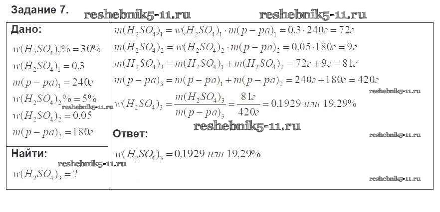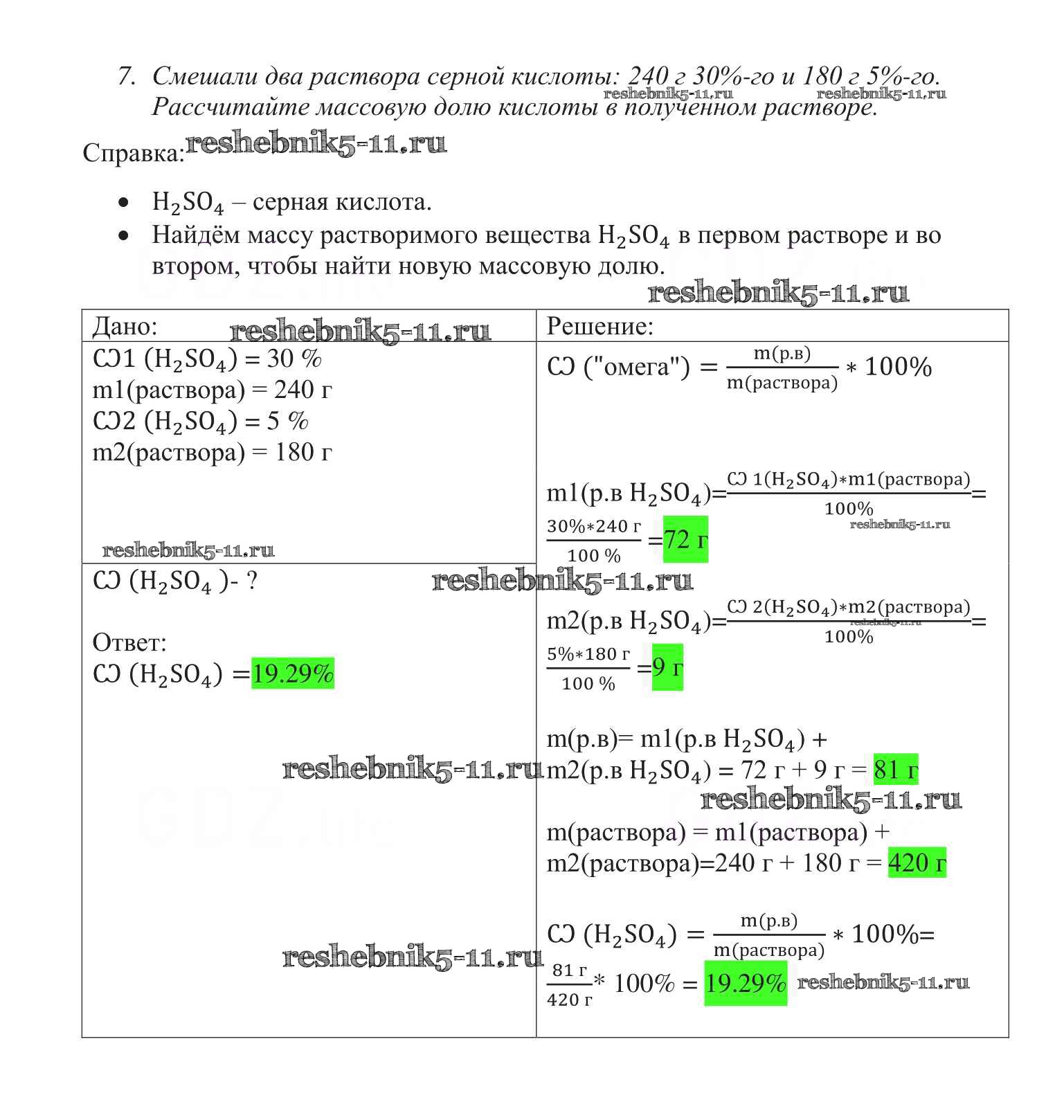 Готовая домашняя работа с ответами по Химии за 8 класс Габриелян Учебник Вертикаль Дрофа 2019 ФГОС - §25. Массовая и объёмная доли компонентов смеси (раствора) 7