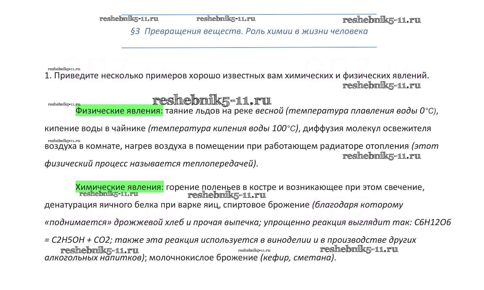 Готовая домашняя работа с ответами по Химии за 8 класс Габриелян Учебник Вертикаль Дрофа 2019 ФГОС - §3. Превращения веществ. Роль химии в жизни человека 1