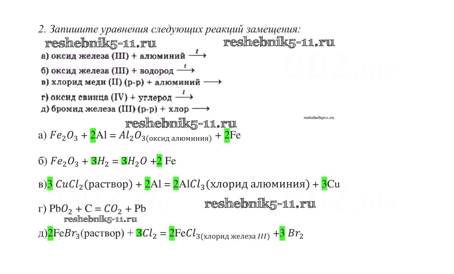 Готовая домашняя работа с ответами по Химии за 8 класс Габриелян Учебник Вертикаль Дрофа 2019 ФГОС - §32. Реакции замещения 2
